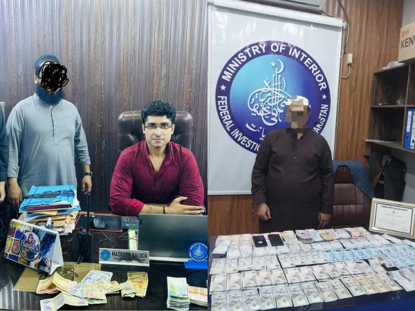 ترجمان ایف آئی اے کے مطابق گرفتار ملزمان میں امتیاز احمد شیخ اور محمد صدیق شامل ہیں جنہیں کراچی کے علاقے شہید ملت اور جناح انٹرنیشنل ایئرپورٹ کی پارکنگ سے گرفتار کیا گیا۔