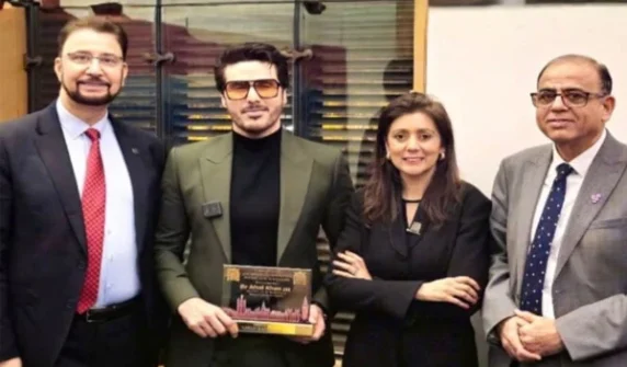 پاکستانی شوبز انڈسٹری کے معروف اداکار احسن خان کو انڈسٹری اور کمیونٹی کے لیے خدمات کے اعتراف میں برطانوی رکنِ پارلیمنٹ افضل خان کی جانب سے خصوصی شیلڈ پیش کی گئی۔