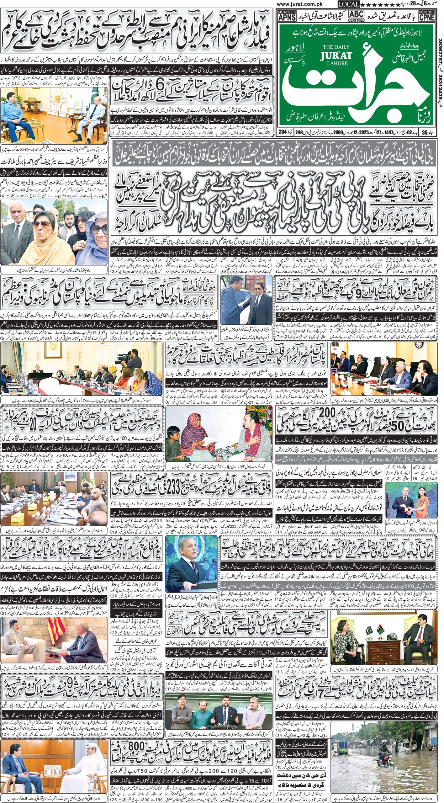 Copyright © 2025. Daily Jurat All rights reserved. Head Office Tijarat Group of Publications: 14/28 Davis Road, Lahore , Pakistan