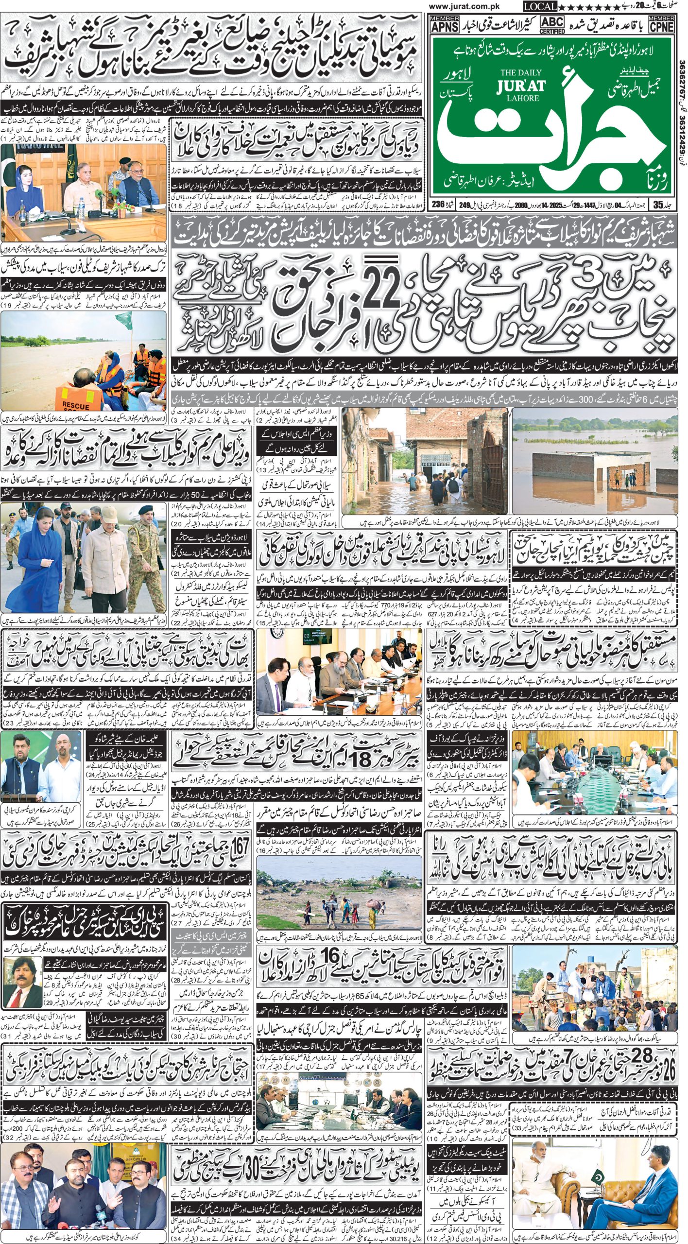 Copyright © 2025. Daily Jurat All rights reserved. Head Office Tijarat Group of Publications: 14/28 Davis Road, Lahore , Pakistan