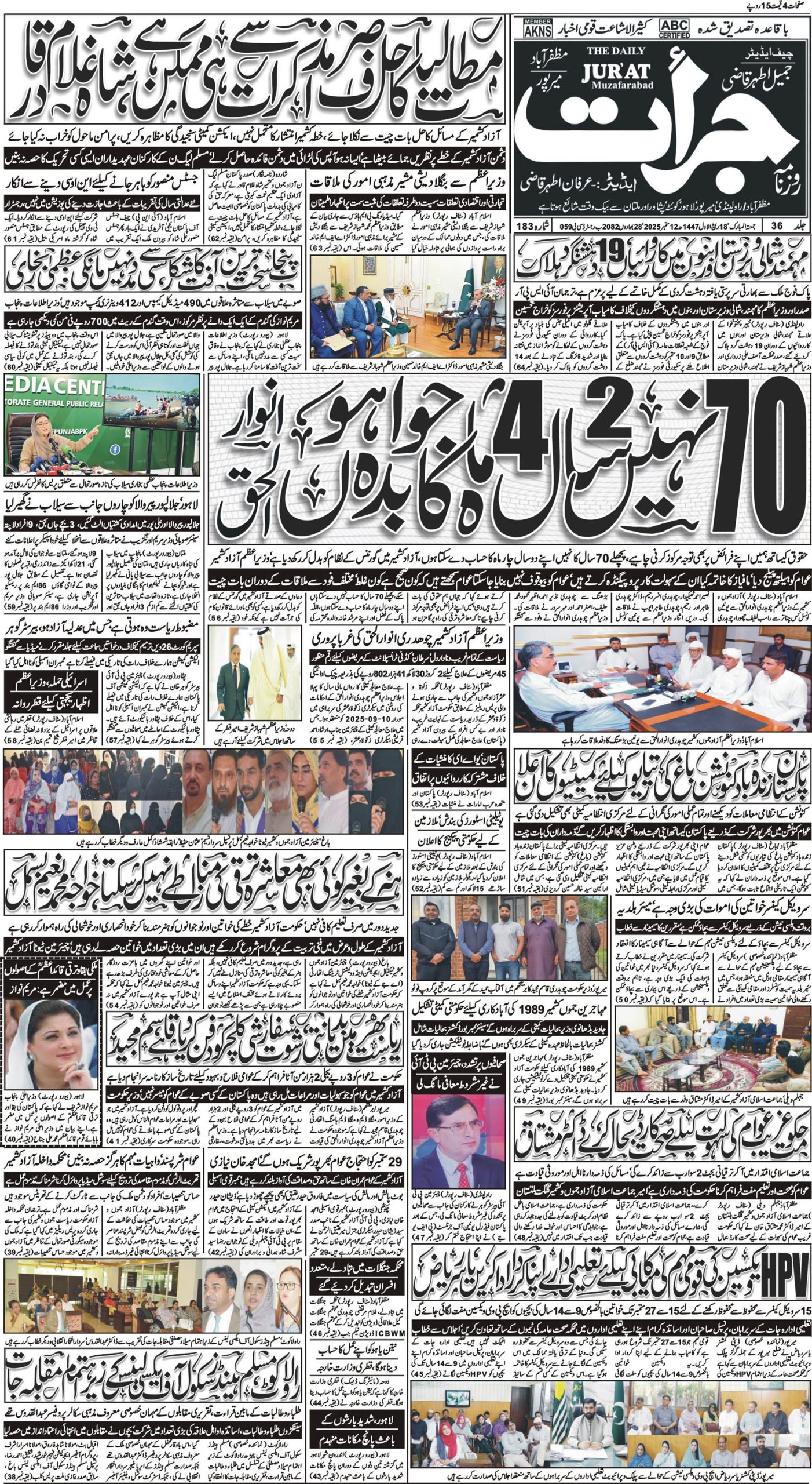 google-site-verification: google1831641f604228ef.html روزنامہ جرأت مظفرآباد اور میرپور 12 ستمبر 2025 - Daily Jurat - Breaking News, Latest and Live