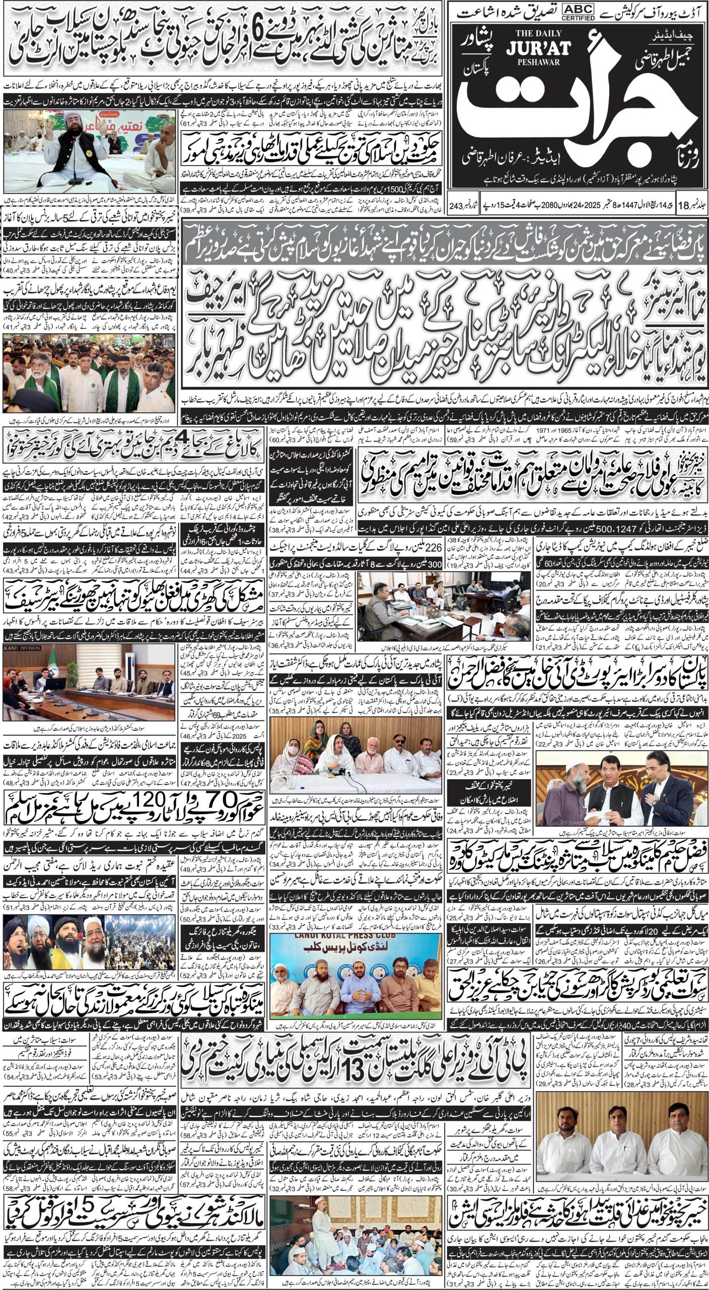 google-site-verification: google1831641f604228ef.html روزنامہ جرات پشاور 8 ستمبر 2025 - Daily Jurat - Breaking News, Latest and Live
