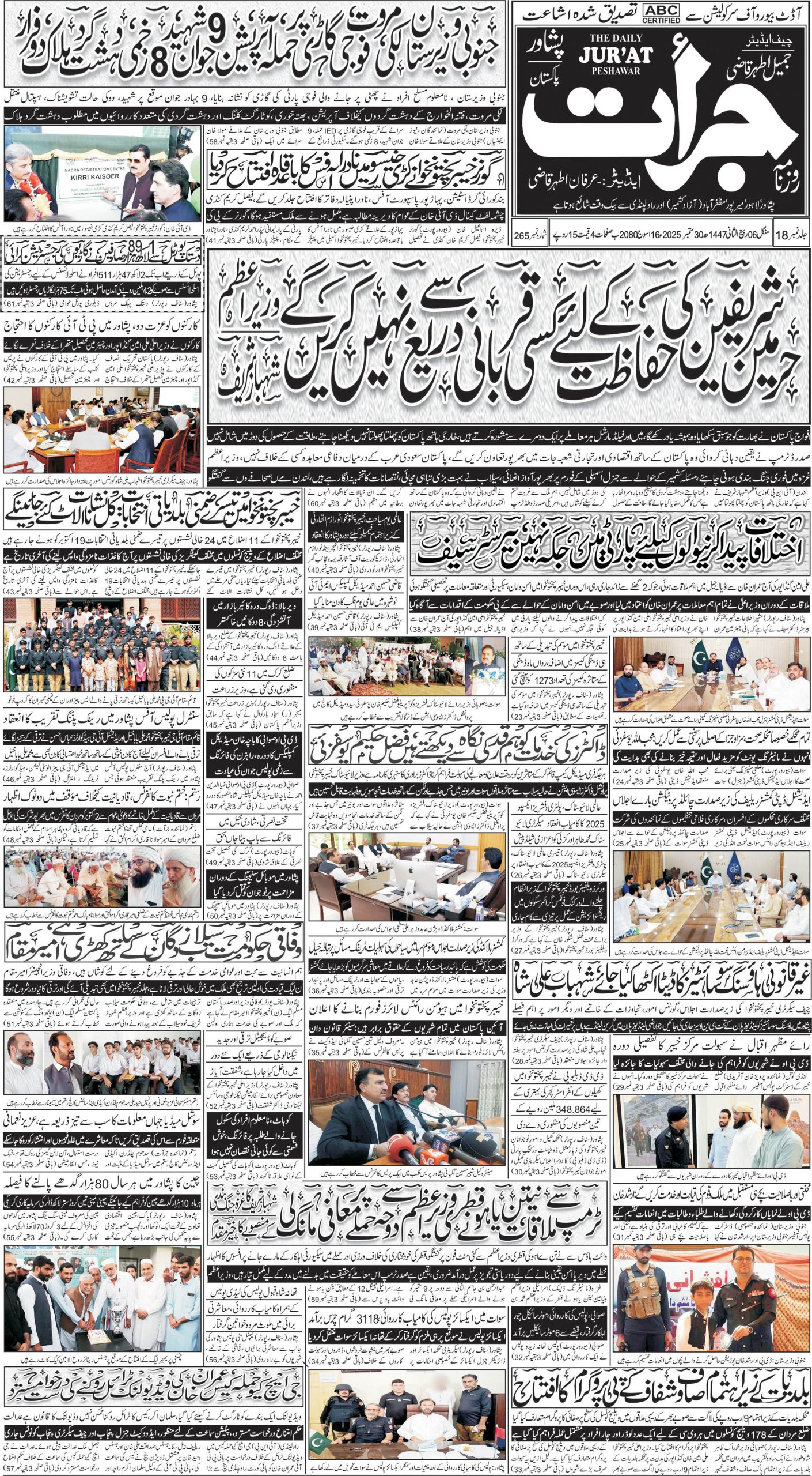 google-site-verification: google1831641f604228ef.html روزنامہ جُرأت پشاور 30 ستمبر 2025 - Daily Jurat - Breaking News, Latest and Live