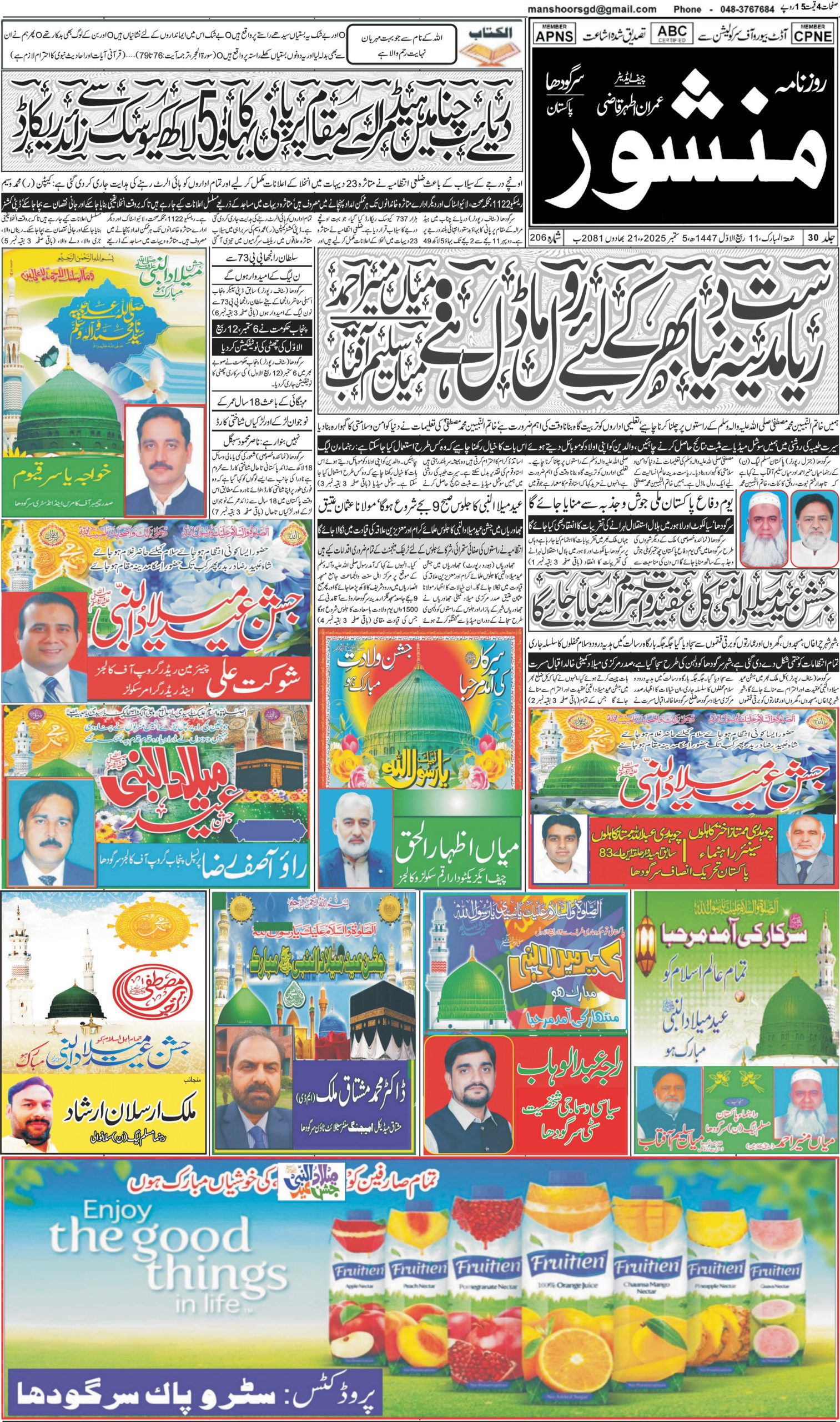 google-site-verification: google1831641f604228ef.html روزنامہ منشور سرگودھا 5 ستمبر 2025 - Daily Jurat - Breaking News, Latest and Live